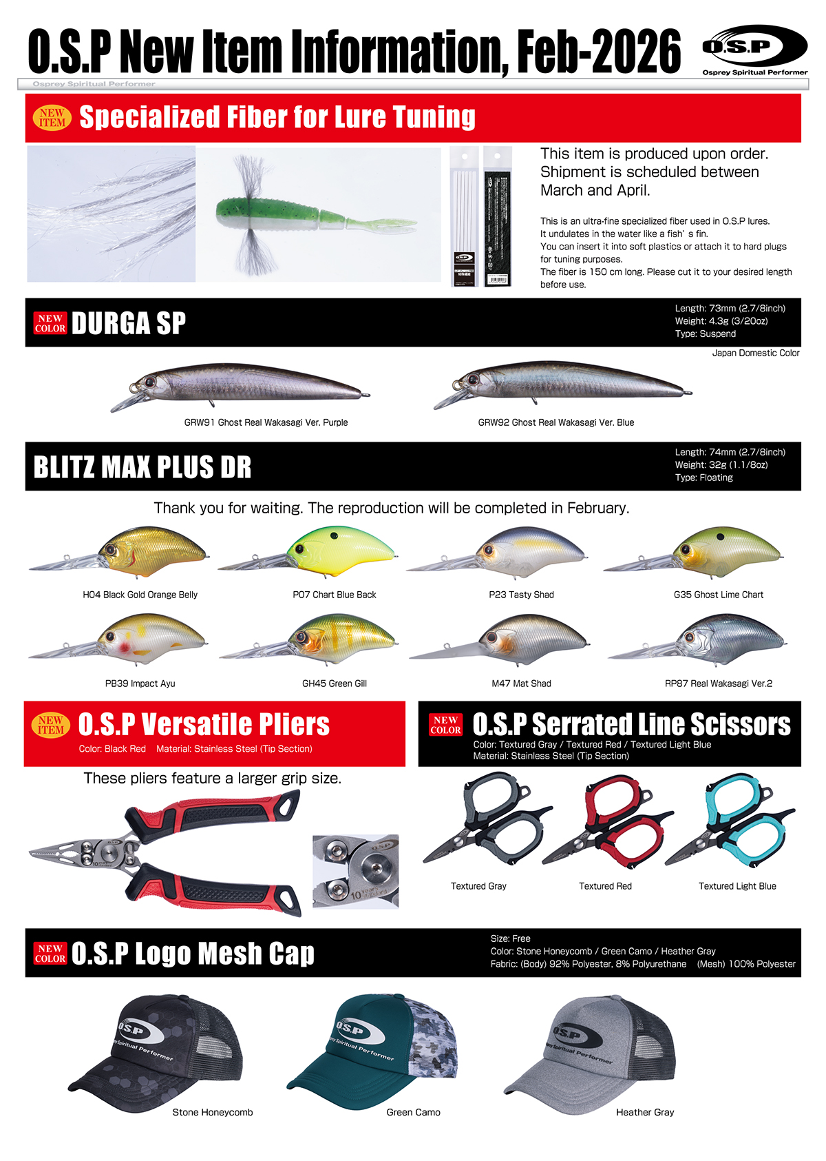 O.S.P New Item Information, Feb-2026